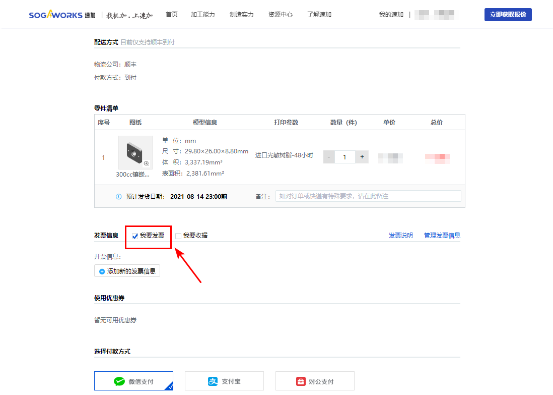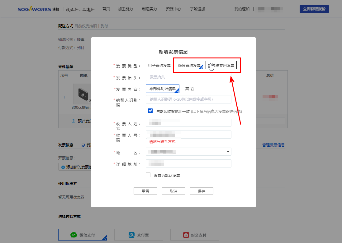 速加支持開具紙質(zhì)發(fā)票和電子發(fā)票。紙質(zhì)發(fā)票可隨貨郵寄給您,也可以單獨(dú)郵寄給您。您可在傳統(tǒng)詢價時選擇相應(yīng)的發(fā)票方式。