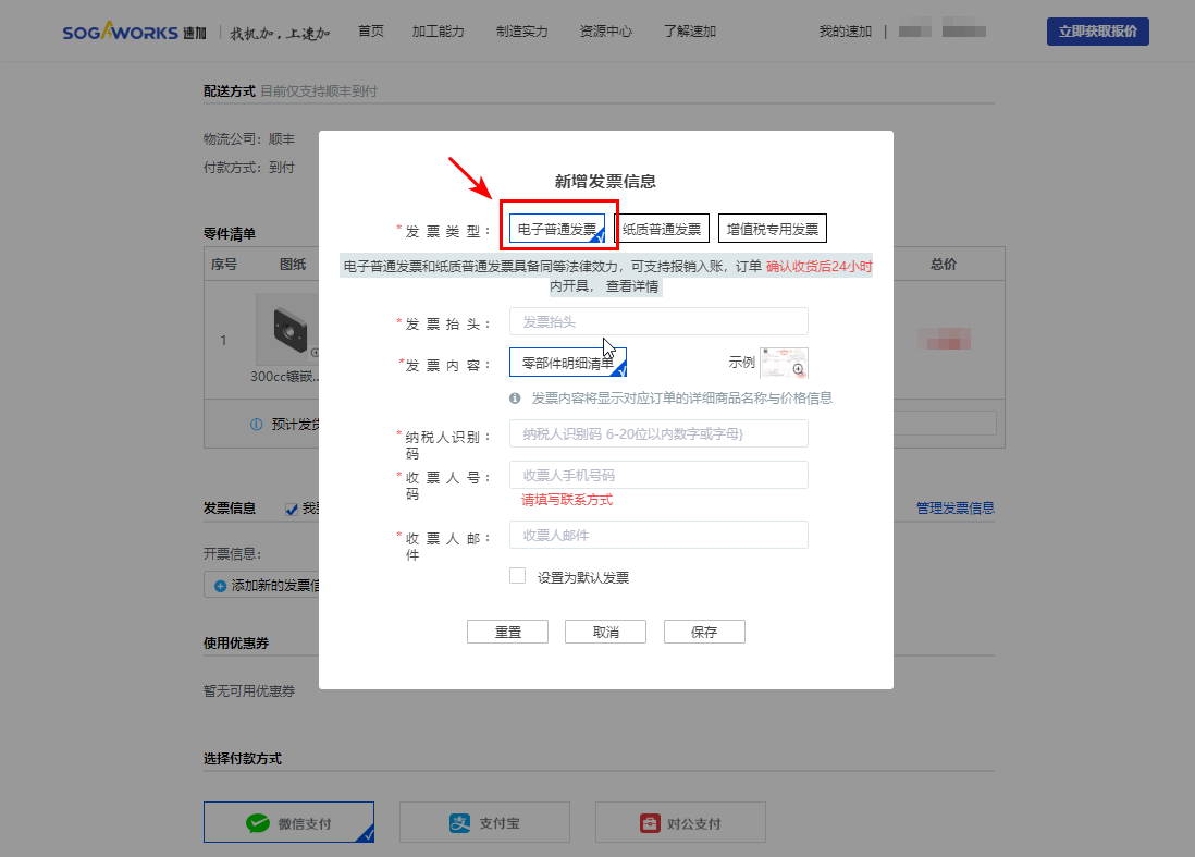6.1 如您勾選【電子普通發(fā)票】,則速加默認(rèn)為您開電子發(fā)票,電子發(fā)票您可在后臺下載