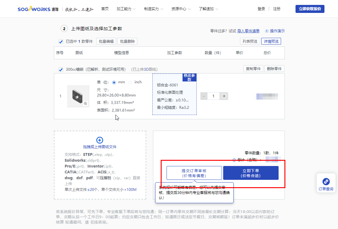 注:為使報價更精準,請上傳齊全的3D和2D圖紙