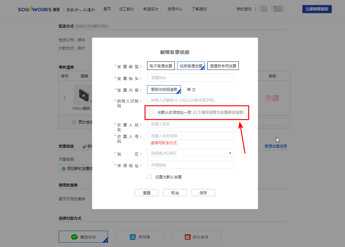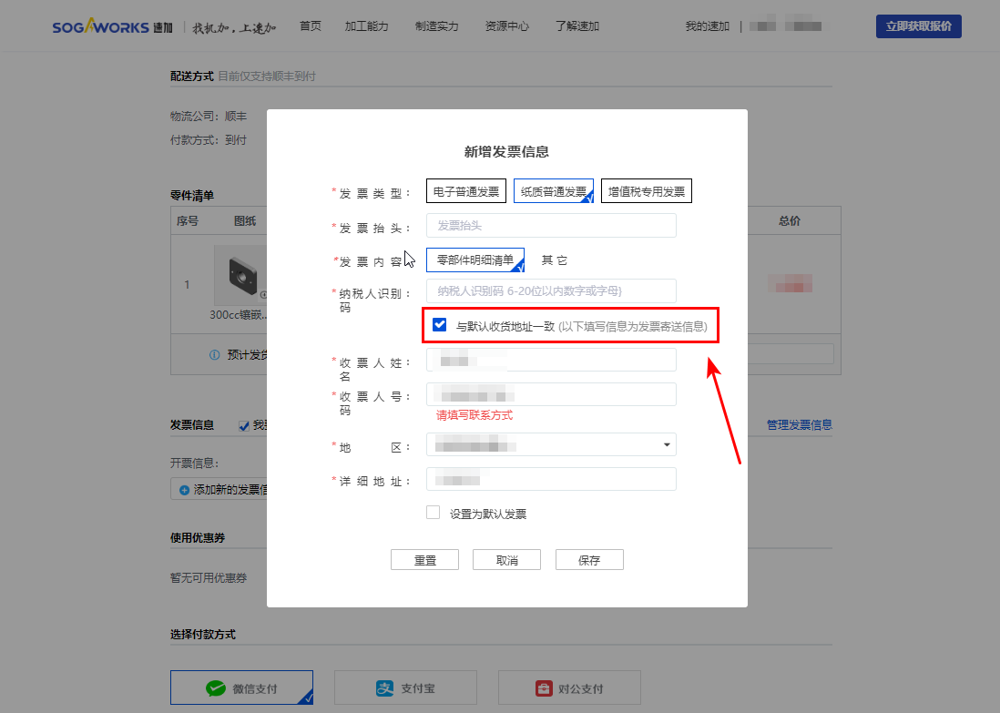 6.2.1 如您勾選【與默認(rèn)收貨地址一致】,則您的發(fā)票將會隨貨發(fā)出